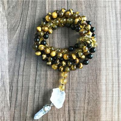 Natural AAA Black tourmaline Tiger Eye and Yellow Quartz Mala Necklace 108 Mala Beads Necklace long Tassel Meditation Jewelry