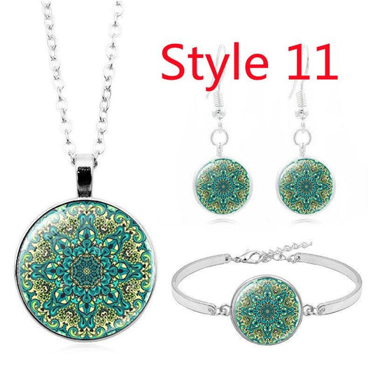 Glass Cabochon Pendant Necklace Bracelet Earrings Om India Yoga Mandala Jewelry for Women's fashion Gift Friendship Jewelry