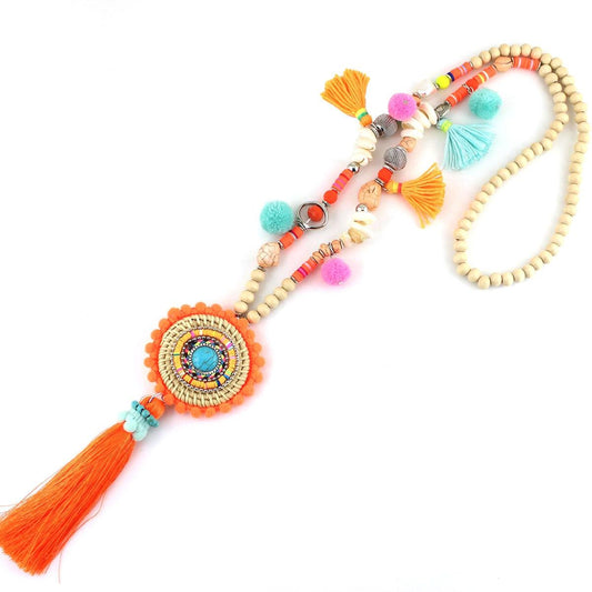 Handmade Women Long Necklace Boho Bohemian Necklace Accessories Colorful Vintage Ethnic Punk Style Fashion Jewelry
